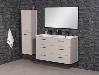 Kolekcja Sydney to propozycja dla miłośników wysublimowanego designu i ponadczasowej elegancji. Połączenie nowoczesnych, matowych wykończeń w trzech modnych kolorach – bieli, taupe oraz macadamia – sprawia, że meble doskonale komponują się z każdą aranżacją łazienki, dodając jej wyjątkowego charakteru. Charakterystycznym elementem kolekcji są stylowe pionowe frezy, które nadają frontom subtelnej elegancji i unikalnego uroku. Ich delikatne żłobienia w połączeniu z czarnymi krawędziowymi uchwytami tworzą harmonijną całość – wyrafinowaną, ale jednocześnie lekką i subtelną. Ten niebanalny detal podkreśla nowoczesny styl kolekcji, wprowadzając do wnętrza nutę luksusu i wyrafinowania.