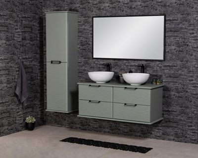 Kolekcja Lilia to nowoczesna seria mebli, która wyróżnia się oryginalnym designem i wysoką jakością wykonania. Dostępna w trzech eleganckich, matowych kolorach: oliwkowym, białym oraz piaskowym. Charakterystyczną cechą kolekcji są zaokrąglone przednie krawędzie frontów i blatów oraz pionowe zaokrąglone frezy, które nadają meblom unikalny wygląd. Biała nablatowa umywalka doskonale komponuje się ze wzorem szafki, tworząc spójną całość. Seria wyposażona jest w nowoczesny system otwierania push to open, zapewniający wygodę użytkowania. Kolekcja Lilia to wyjątkowy wybór dla tych, którzy poszukują mebli łazienkowych o nietuzinkowym designie, oddających hołd nowoczesności, jednocześnie cechujących się wysoką jakością wykonania i trwałością.